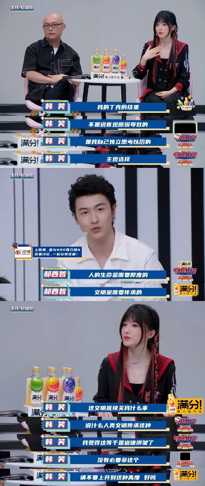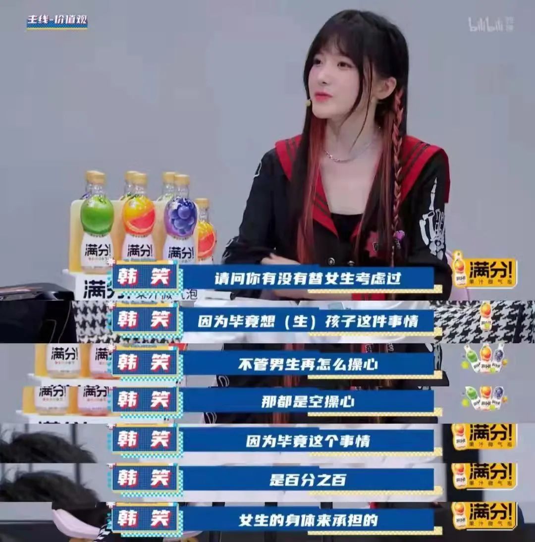 第一期,第一位女嘉賓就問了男嘉賓是否支持丁克的問題,並斬釘截鐵地説:“生孩子是完全由女生的身體來承擔的,男生再怎麼操心也是瞎操心。”