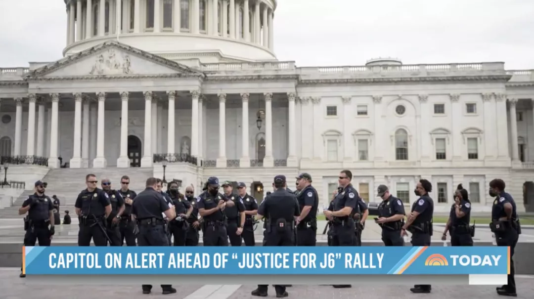 這場集會名為“Justice for J6 Ralley”,由“美國向前看”組織發動,目的是為今年1月6日“國會騷亂”正名,為被警察殺害、逮捕和指控的集會者所受的“不當待遇”伸冤。