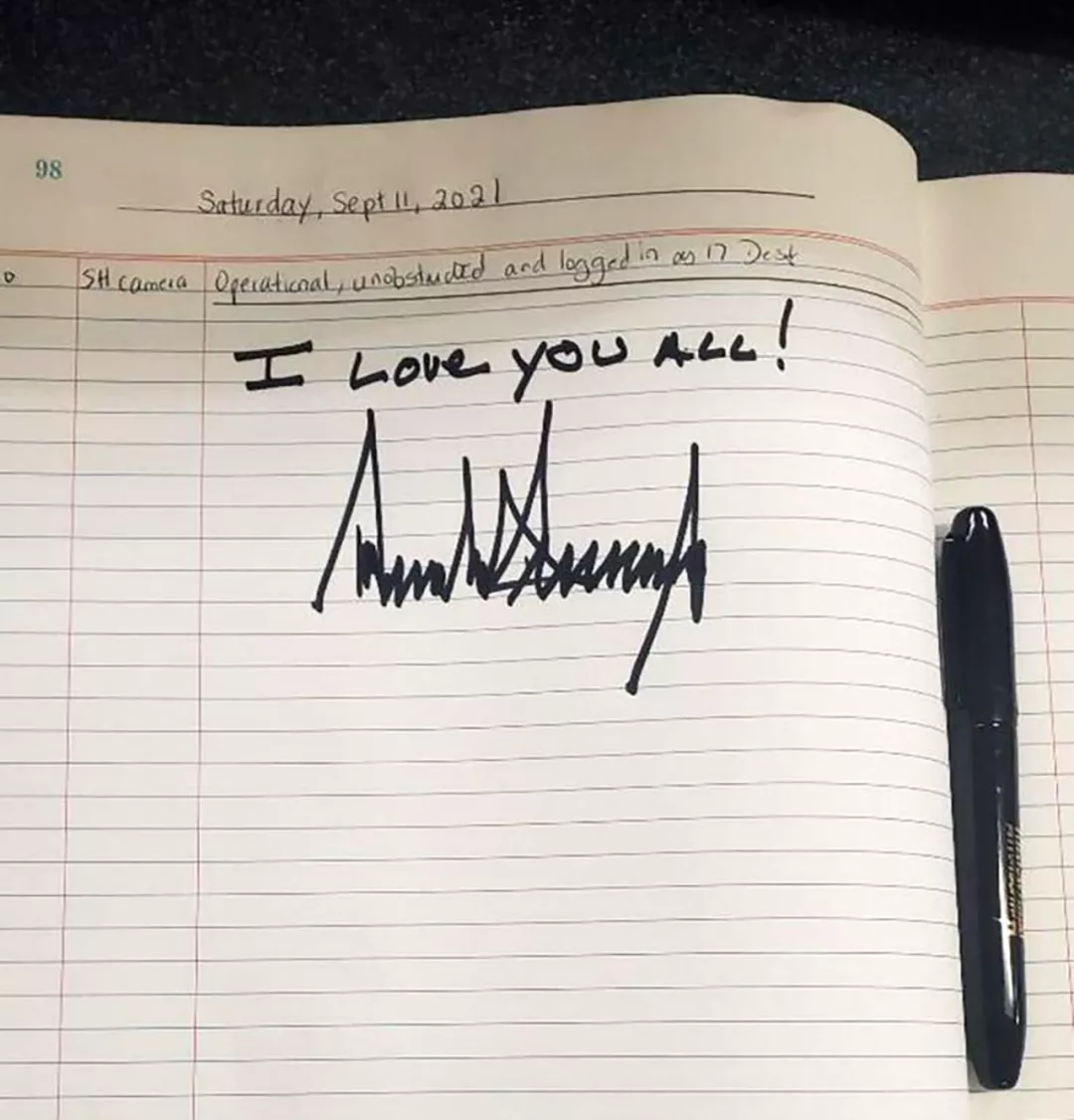 之後,他在消防隊的備忘錄上題詞:我愛你們所有人!
