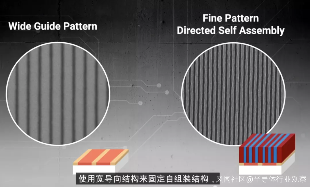 除了成本之外,傳統的自上而下的光刻模式正日益受到感光材料對光反應的固有問題的挑戰,如隨機打印失敗和線邊/線寬粗糙度(LER/LWR)。而定向自組裝(DSA)技術被認為是一種革新的、更具成本效益的製造方法,它是採用自下而上的模式。作為補充和進一步擴展基於光刻的模式的潛在途徑。