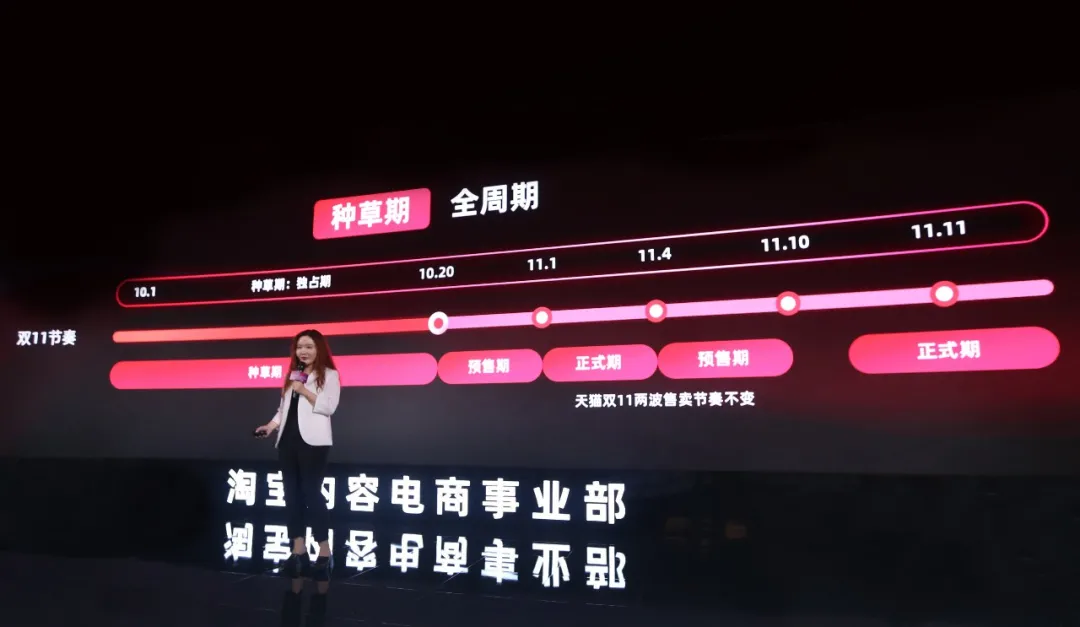 據瞭解,今年雙11依然是兩波售賣階段,因此,貫穿雙11全鏈路的種草期,也將針對幾個不同的重要時間節點有不同的側重和打法。