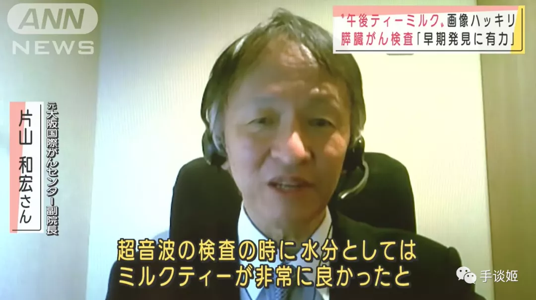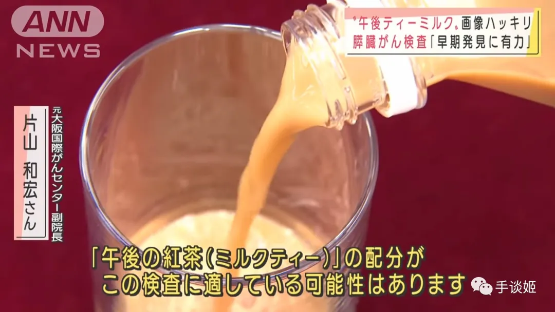 另一名研究中心檢驗研究部部長中山表示,他多年來一直在摸索早期發現胰臟癌的辦法,後來發現在超聲波檢測前,喝“午後紅茶”的奶茶,就能看得很清楚,而其他的飲品就沒有這麼好的效果。