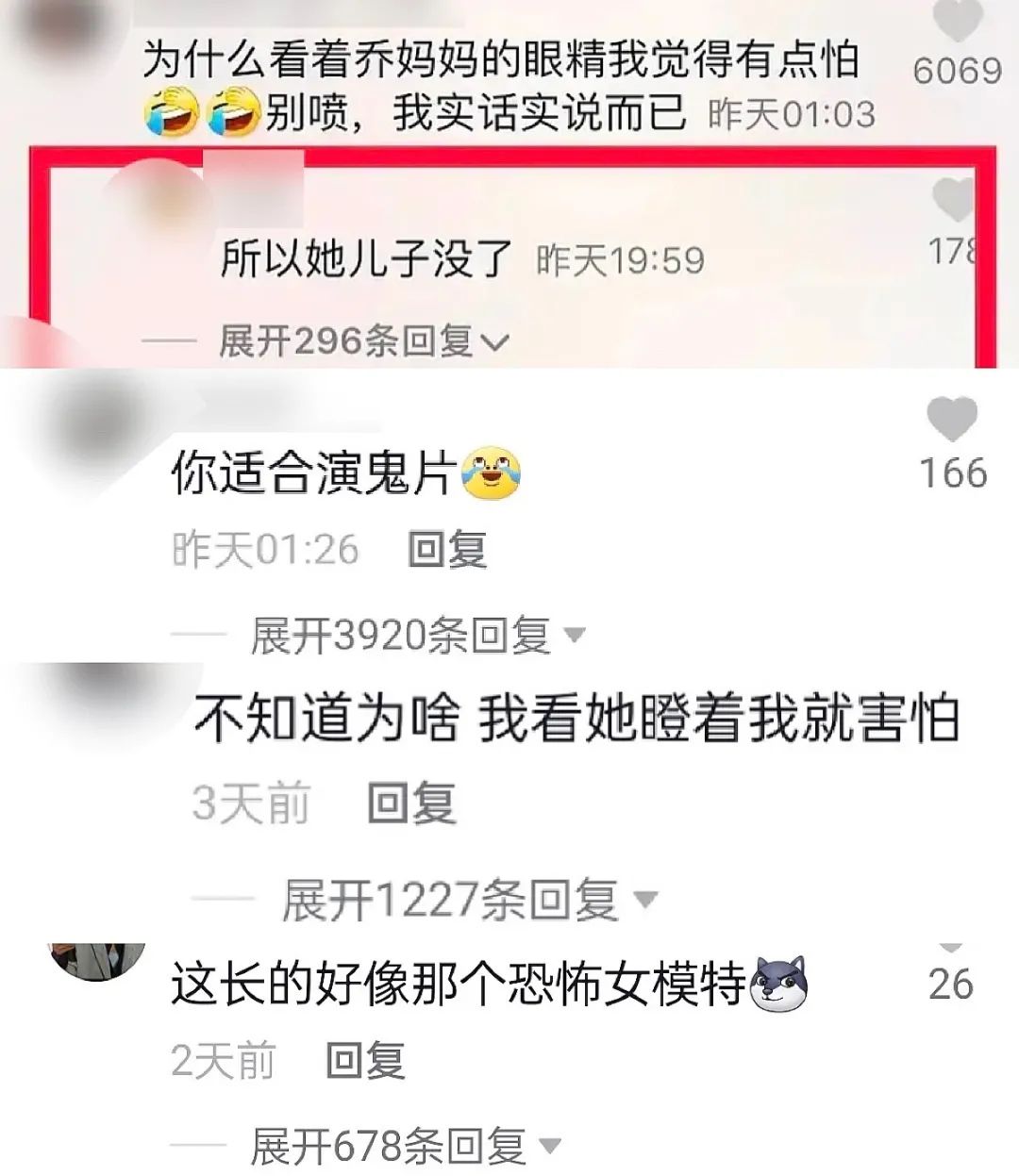 “喬媽長得嚇死人了,把我兒子都嚇哭了。”