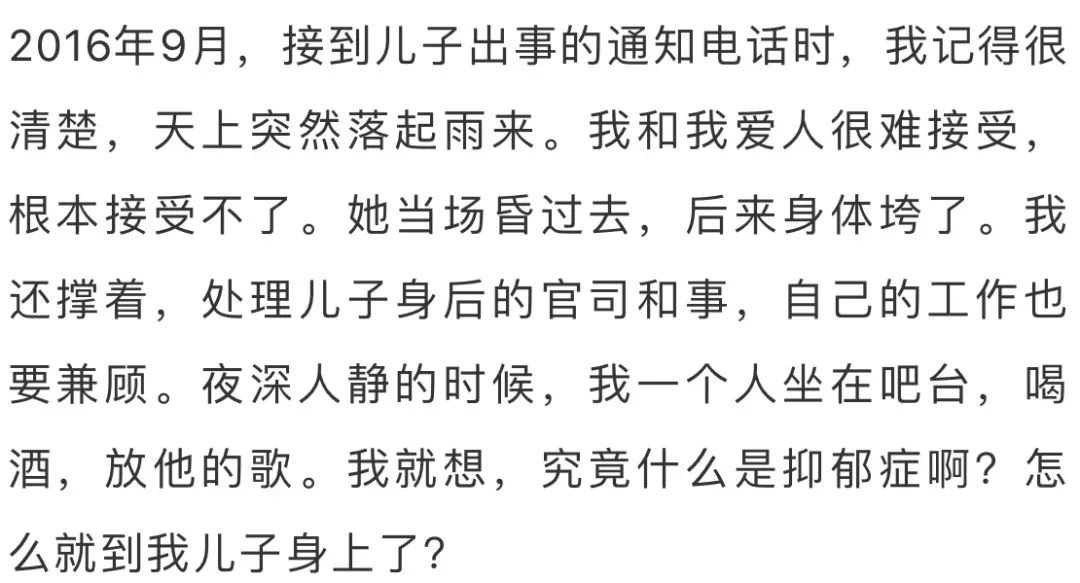 他媽媽因為和喬任梁不住在一起,孩子總報喜不報憂,也沒能及時覺察到兒子心理已經有很大問題。