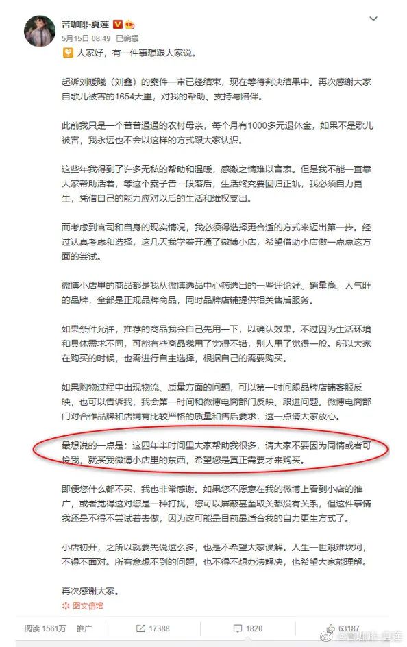 但今年5月,她開通了微博“小店”。這意味着,她有了一層新的身份:一個帶貨博主。