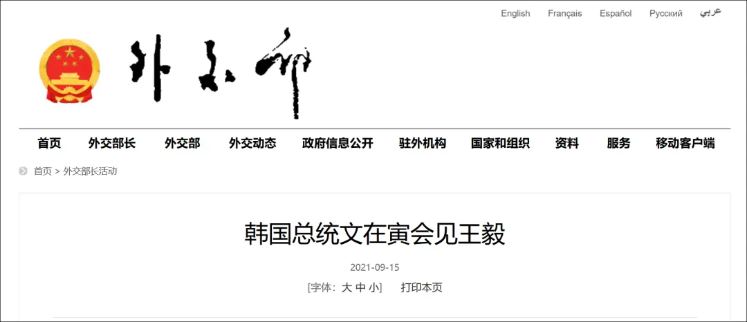 據外交部消息,當地時間2021年9月15日,韓國總統文在寅在首爾會見對韓國進行正式訪問的國務委員兼外長王毅。