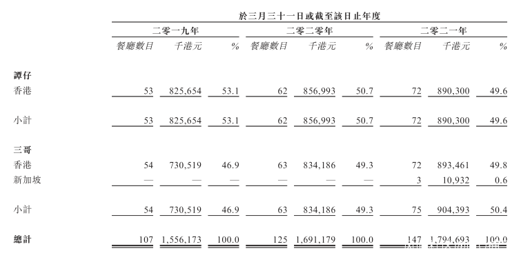財務方面,譚仔國際的業績比較穩定。截至3月31日止,從2019年至2021年三年的營收分別為15.56億、16.91億和17.95億港元,複合年增長率為20.7%。同期,的年度溢利分別為1.98億、1.91億和2.88億港元,往績期間的複合年增長率為20.7%。