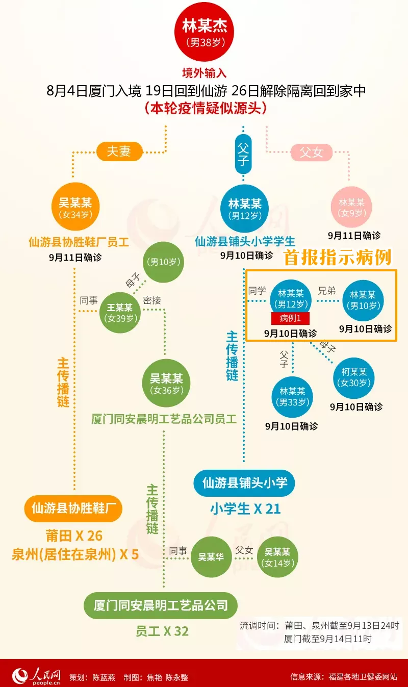 至9月13日24點前,近90萬人的仙遊縣完成第一輪全民核酸檢測採樣,14日開始進行第二輪。14日下午啓動320萬人的莆田全市全民核酸檢測。