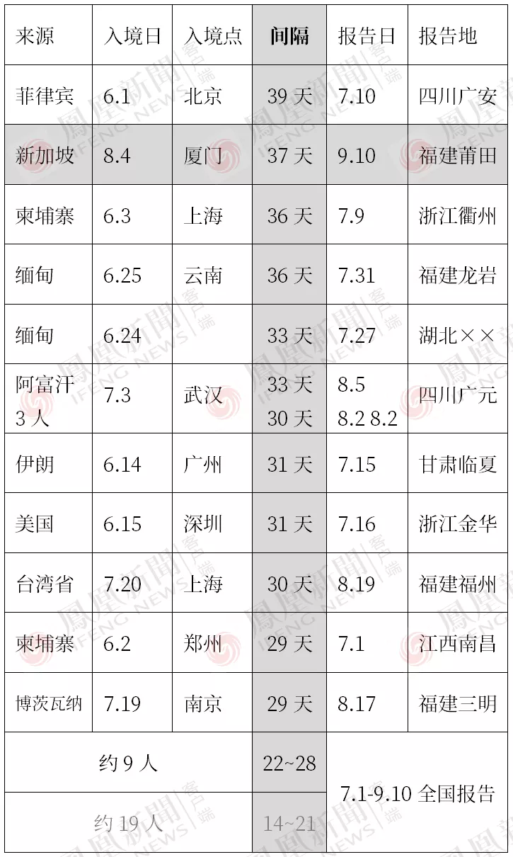 福建龍巖7月31日曾檢出間隔36天(來自緬甸,6月25日雲南入境)的陽性。
