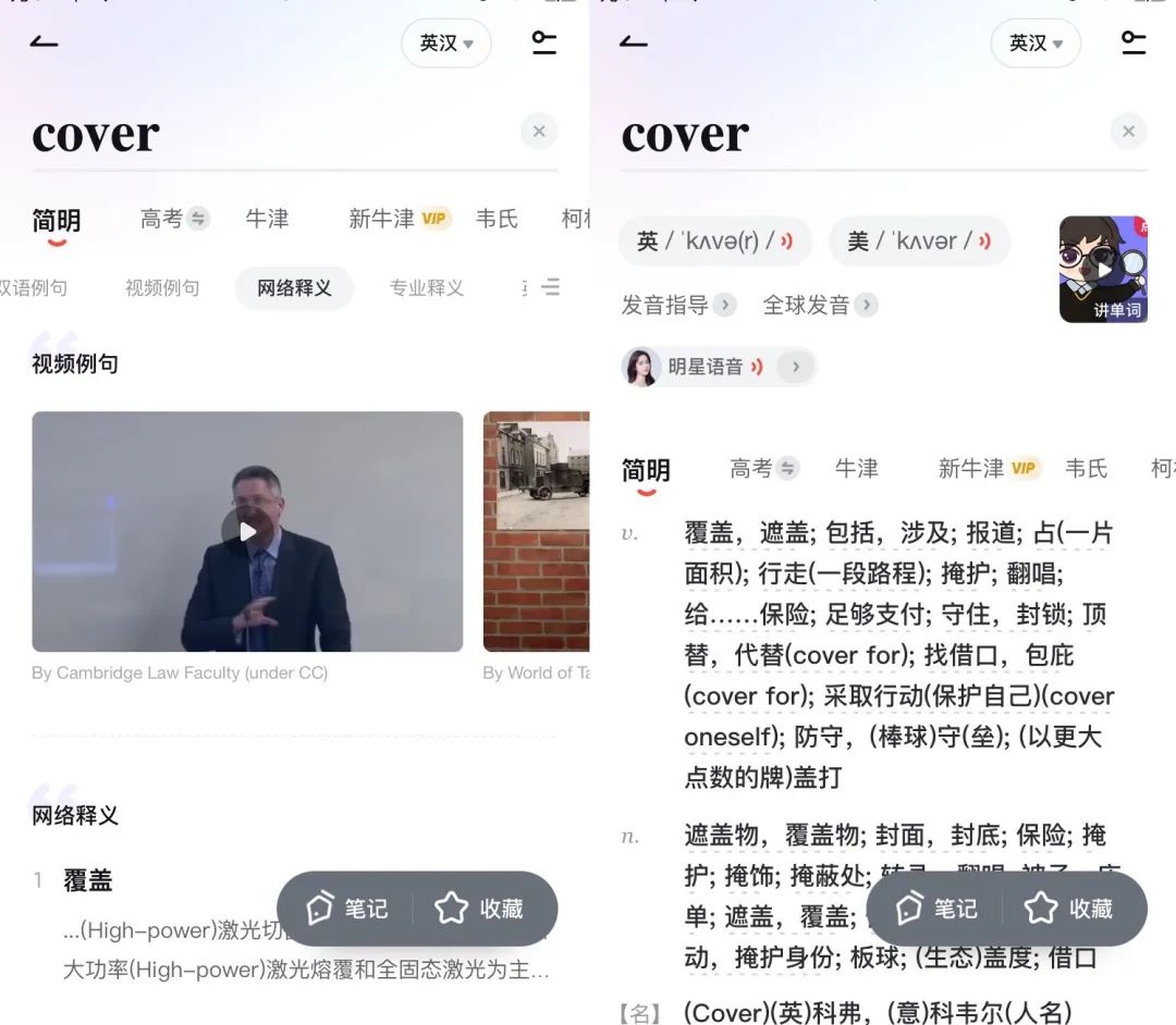 根據平台設置的功能分類,用户可以設置自己的考試目標,得到高考、牛津、新牛津、韋氏柯林斯等更多專業體系下的用法和釋義,滿足用户各個專業領域下的翻譯需求。