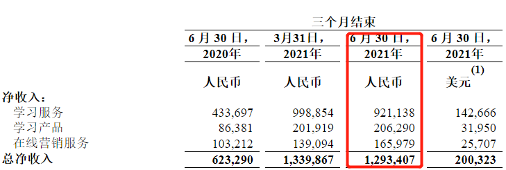不同於業內普遍all in“賣課”的打法,網易有道的主營業務結構中,佔比最大的是學習服務,其次是學習產品、在線營銷。根據日前發佈的Q2財報可以看到,截至6月30日,網易有道的淨收入達到12.93億元,同比增長107.5%。