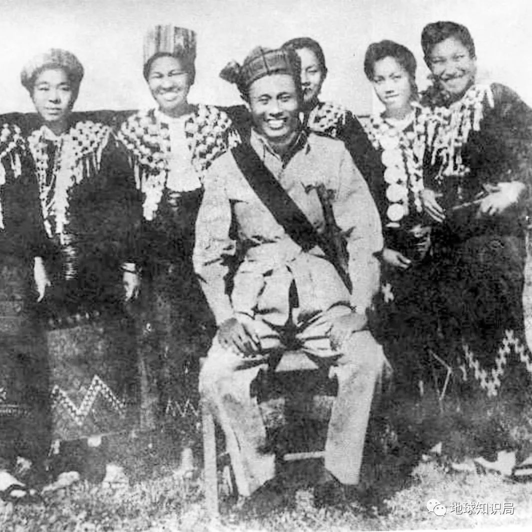 (昂山與克欽族婦女合影,圖:wiki)▼
