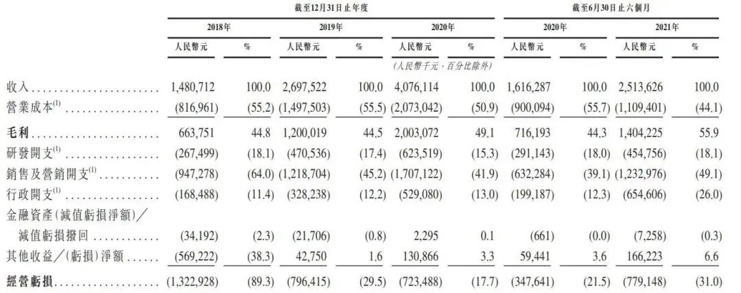 招股書數據顯示,2018年-2020年,喜馬拉雅的營收分別為14.81億元、26.98億元、40.76億元,呈現出持續增長的態勢。而今年上半年,公司已實現25.14億的營收,同比增長55.5%。但是,這個增速比不上公司成本抬升的速度。