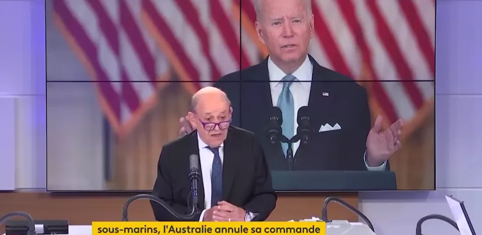 美英澳的這一決定引發法國震怒。法國外交部長勒德里昂(Jean-Yves Le Drian)怒斥盎格魯-撒克遜盟友們對法國“背後一擊”,“背叛”了法澳兩國的信任關係。