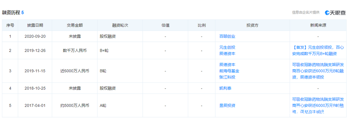 截止目前為止,百心安生物已經完成了數輪融資,據天眼查數據顯示: