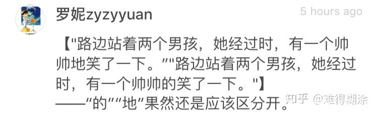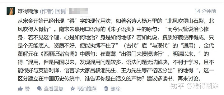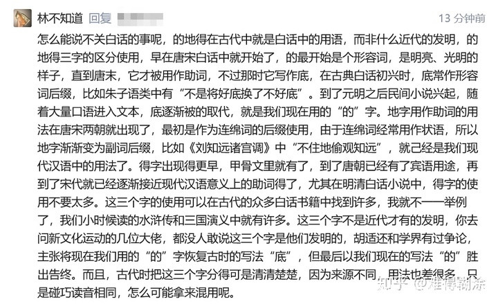 對於有人説**“的地得”是現代白話文運動引入西方的產物,中國古代沒有“的地得”,更沒有三者的區分,@難得糊塗 了他和@林不知道 的兩條評論:**