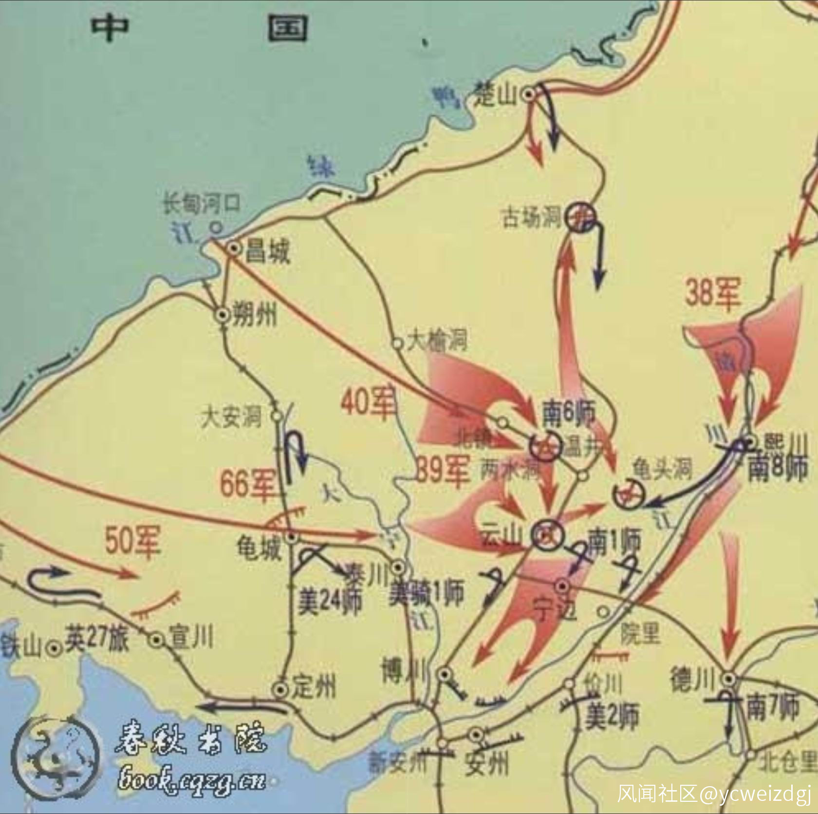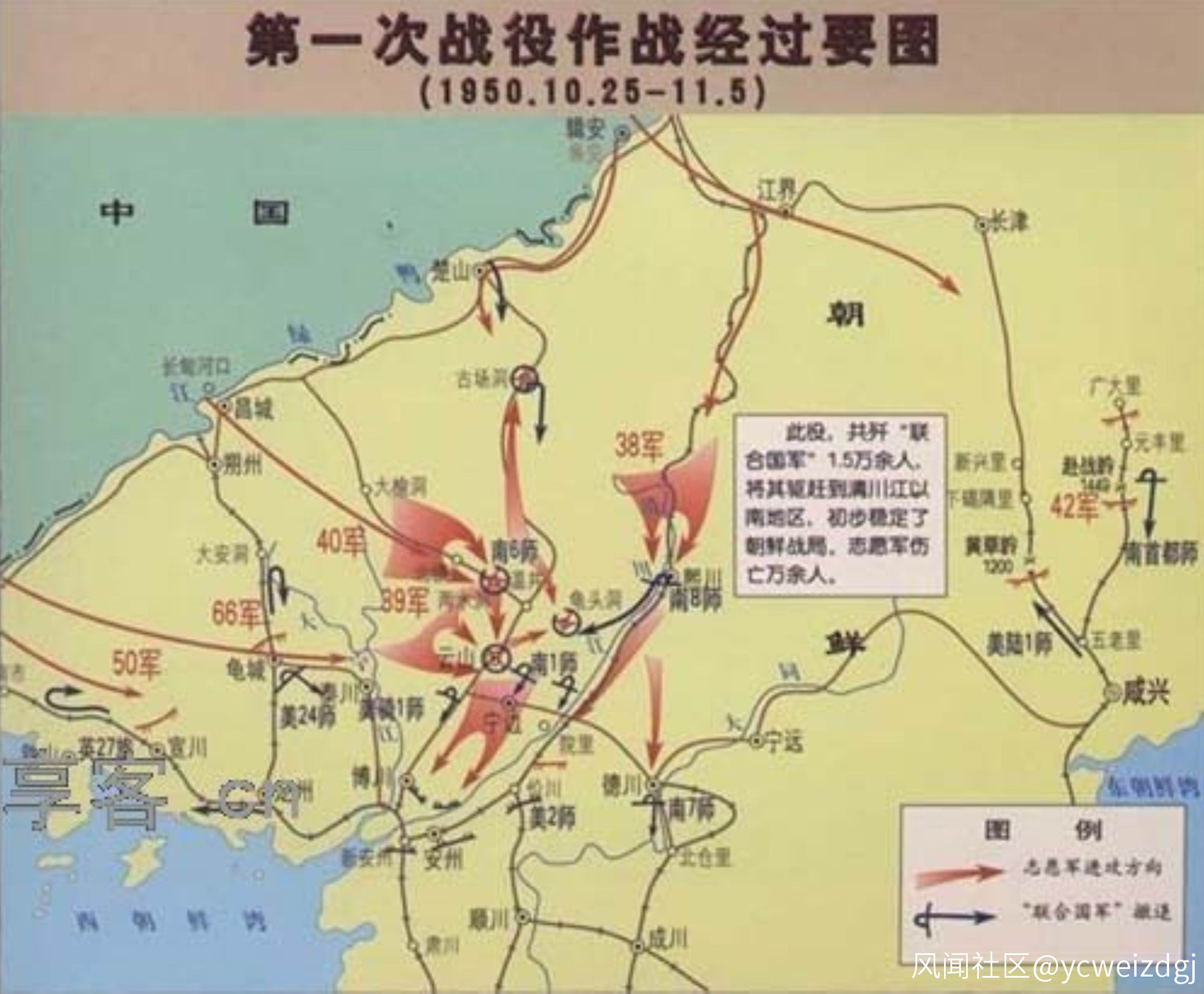 1950.10.25(入朝紀念日),第1次戰役打響。甲方志願軍奪回温井,乙方敗退清川江南。