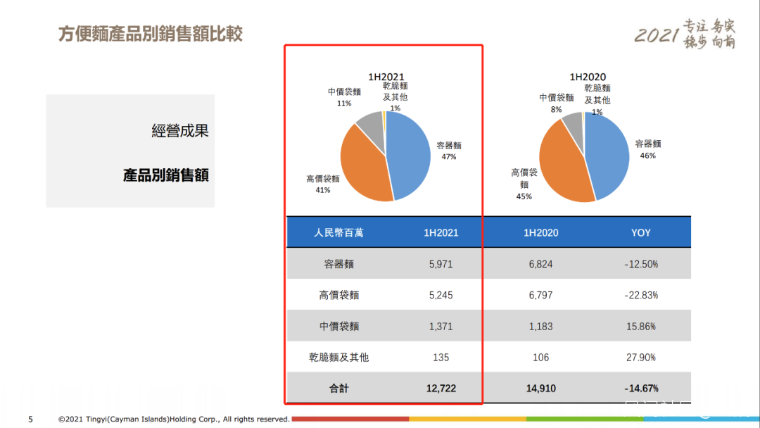 截至2021年中期,康師傅的泡麪業務,國內市佔率仍為第一,即飲茶業務國內市佔率第一,其他品類市佔率也基本處於市場第二位,可背後的諸多無奈卻也日漸凸顯。