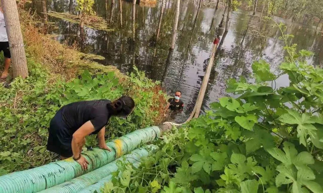 菠蘿救援隊在浚縣村莊抽水(圖源:受訪者供圖)