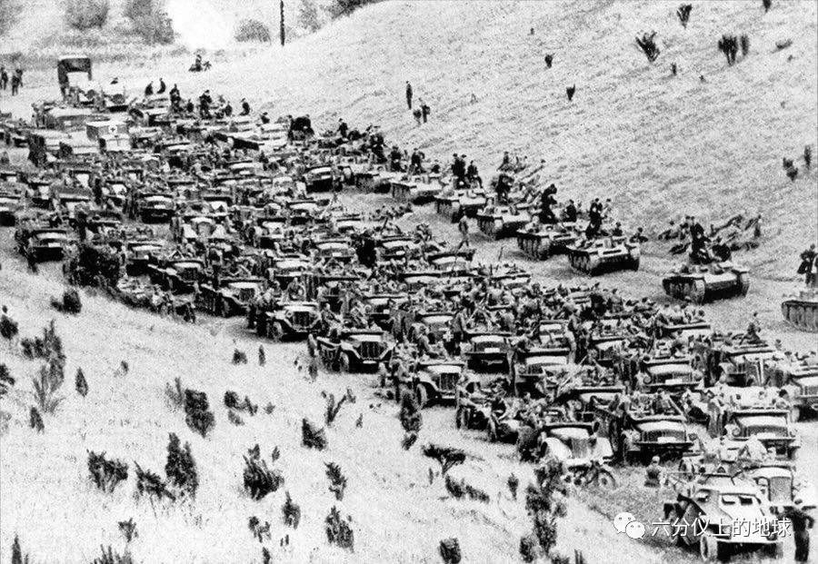 1940年6月,法國阿布維爾。隆美爾將軍的第7裝甲師所屬部分裝甲戰鬥車輛行軍途中短暫停留。