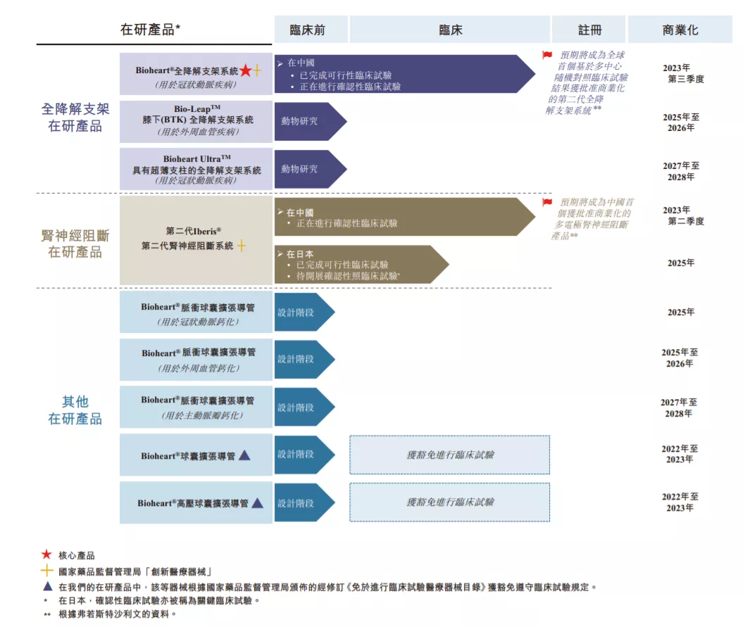 為解決中國血管疾病及高血壓患者的未滿足醫療需求,公司已開發一套全面的介入式裝置在研產品組合,其中包括: