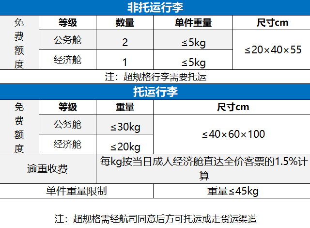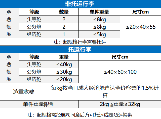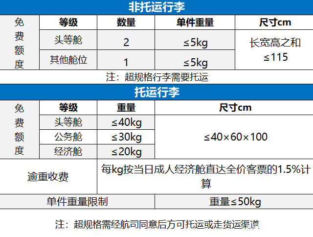 出行相關|各大航司陸續發佈行李最新規定,哪家免費額度最多?_風聞
