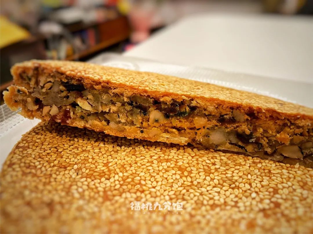 橋墩月餅的特色,乍一眼就突出一個“大”字——直徑超過20釐米,表面佈滿了芝麻,內裏則是花生、桂圓、瓜子、冬瓜糖、果脯、葱和肥豬肉的組合體!一口吃下去,那種潤、那種豐富、那種甜、那種滿足感,是我每年對中秋食物的最大盼望。而我的温州朋友,每年都會找當地老字號“丁坤興”訂一批,向我們推薦這種本地美食。
