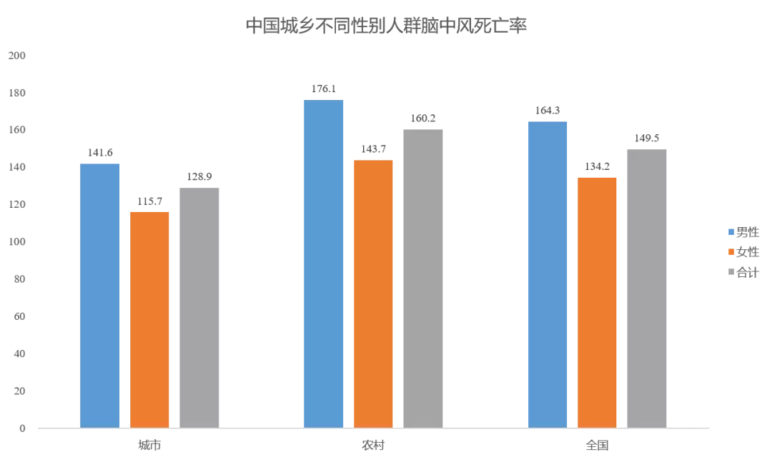 無論是男性羣體還是女性羣體,農村居民的腦中風死亡率均顯著高於城市居民。該差異主要來自以下幾個方面: