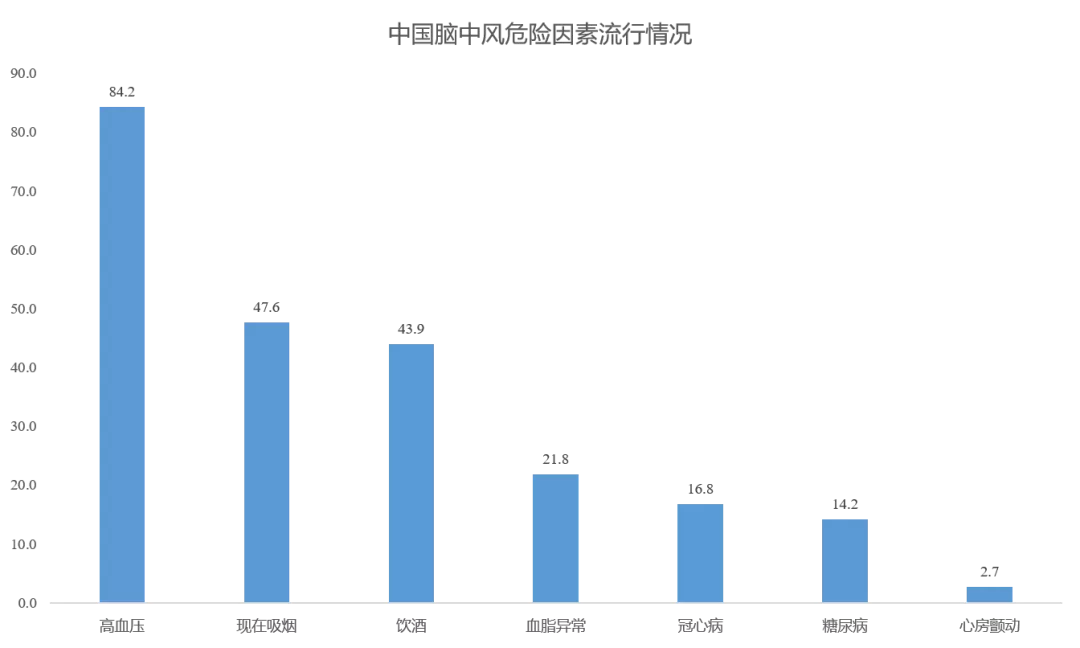 從整體看,腦中風存活者最普遍存在的危險因素是高血壓、吸煙和飲酒,同時,血脂異常、冠心病和糖尿病也佔有一定的比例。