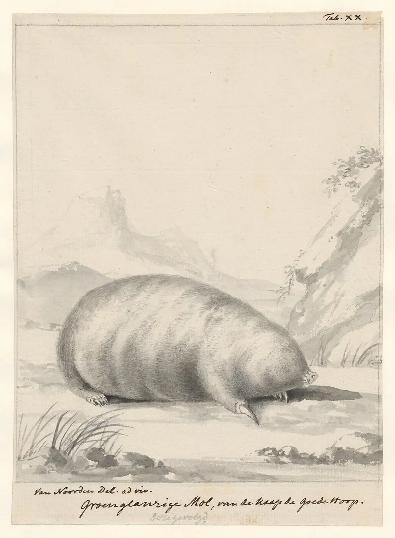 身材圓潤的開普金鼴(Chrysochloris asiatica),Cornelis van Noorde繪製 | Wikimedia Commons