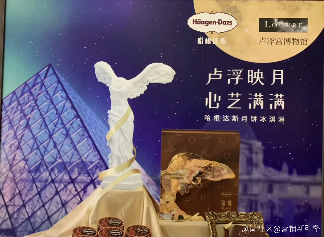 在今年的此類跨界合作中,文化機構是引人注目的主角。例如上海博物館和大都會藝術博物館就攜手品牌來伊份進行聯名合作,推出了以博物館藏品為靈感的月餅禮盒。盧浮宮博物館與哈根達斯中國(公司)合作,推出了以維納斯、蒙娜麗莎等藝術女神為主題的冰淇淋月餅。