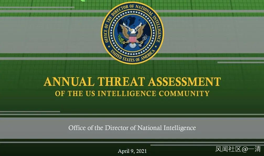 4月13日,美國國家情報總監辦公室發表《2021年度威脅評估報告》。