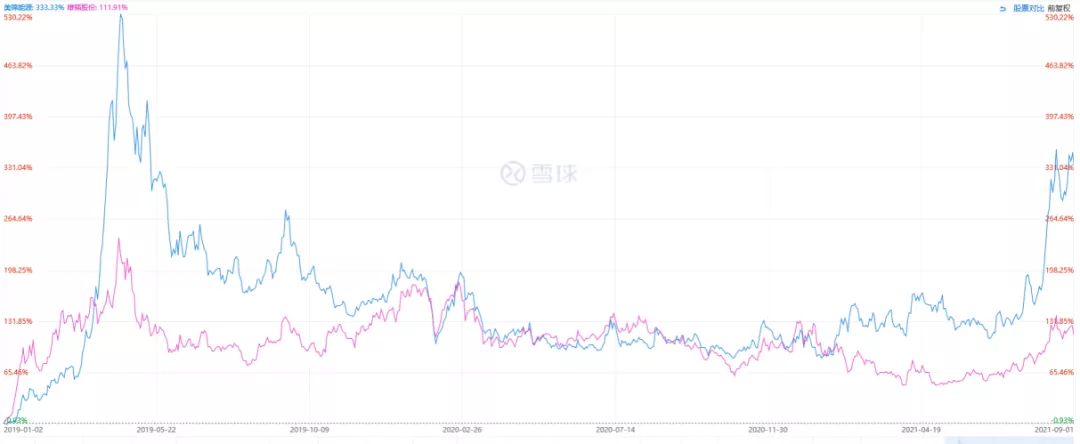 圖1:美錦能源、雄韜股份股價走勢,資料來源:雪球