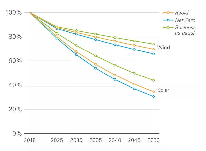 圖11:未來30年光伏成本下降曲線,資料來源:BP Energy