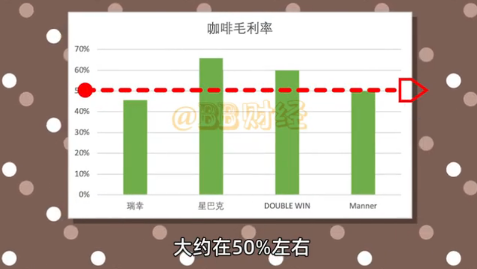 公開資料顯示,市面上的咖啡毛利率大約在50%左右。新進小主Manner在50%以上,Double win 據説能達到60%,都趕上星巴克了,瑞幸造假前,毛利率也有46%呢。
