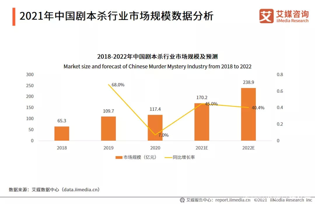 據艾媒諮詢報告中心數據,2020年全國劇本殺規模達到了120億元,2021年將達到181億元,向200億大關發起衝擊,消費者規模也在向千萬人次邁進。全國劇本殺門店從去年11月份至今年4月,半年時間漲幅達133%,增添兩萬家門店,成為全國最受矚目的風口項目。