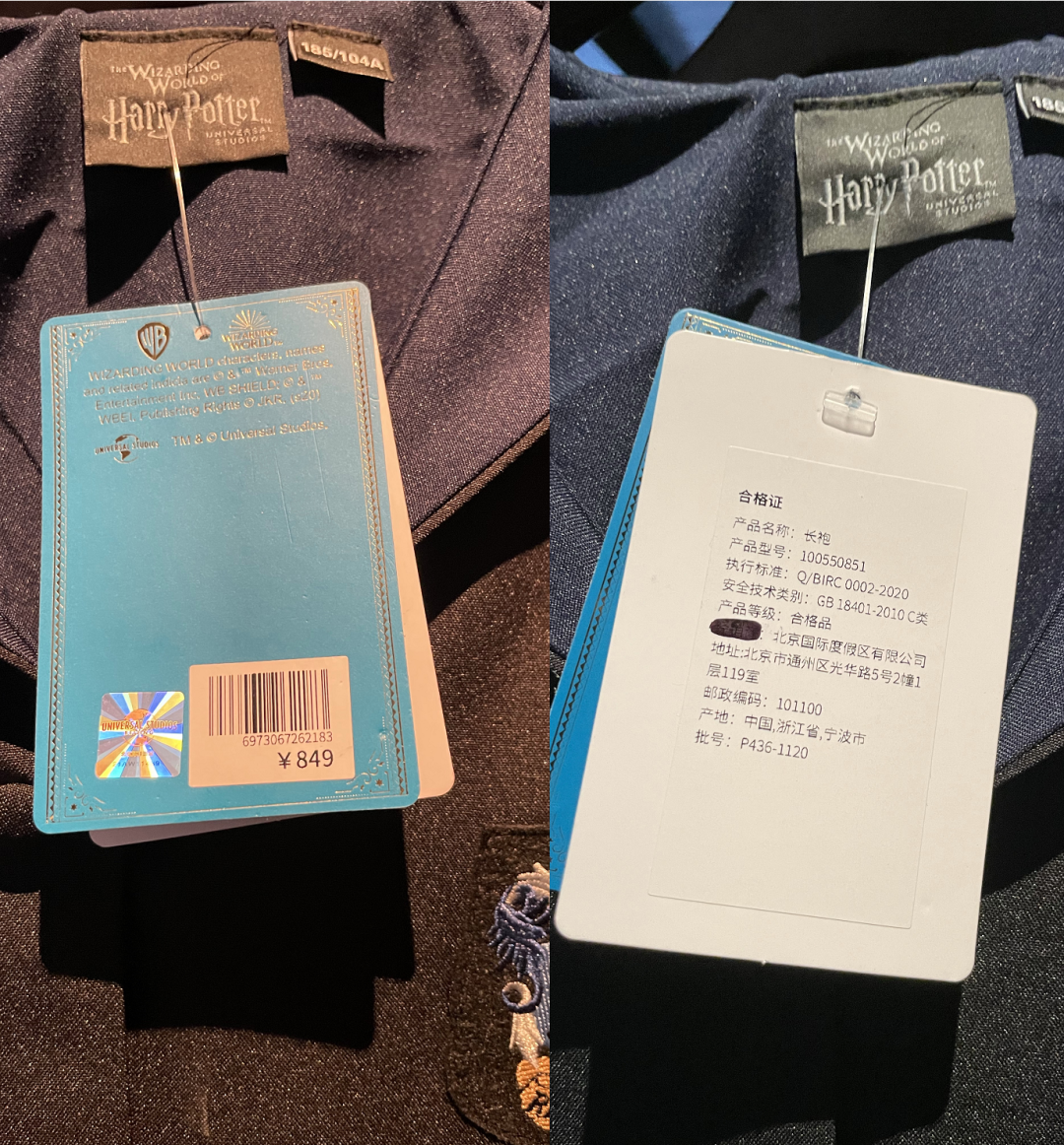 849元一件的魔法袍及其吊牌信息