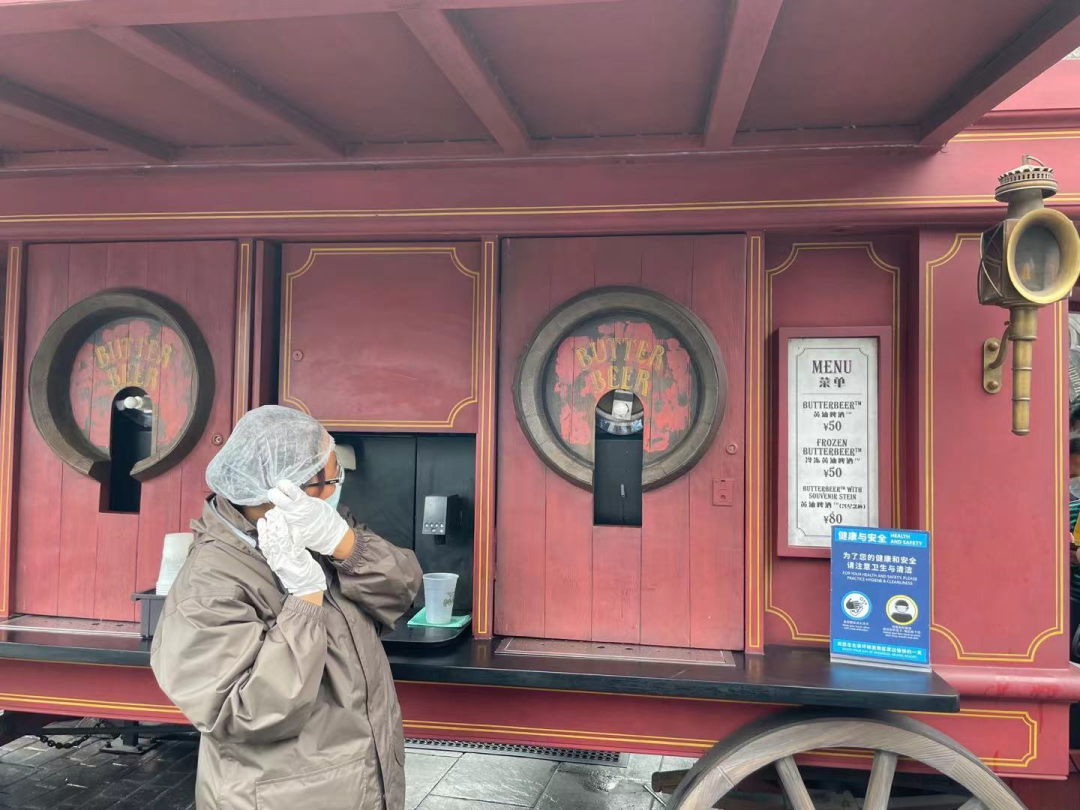 而這樣全天排隊結賬的地方,在哈利波特主題區內,就有魔杖購買區域、黃油啤酒購買區域、三把掃帚餐廳等多處。
