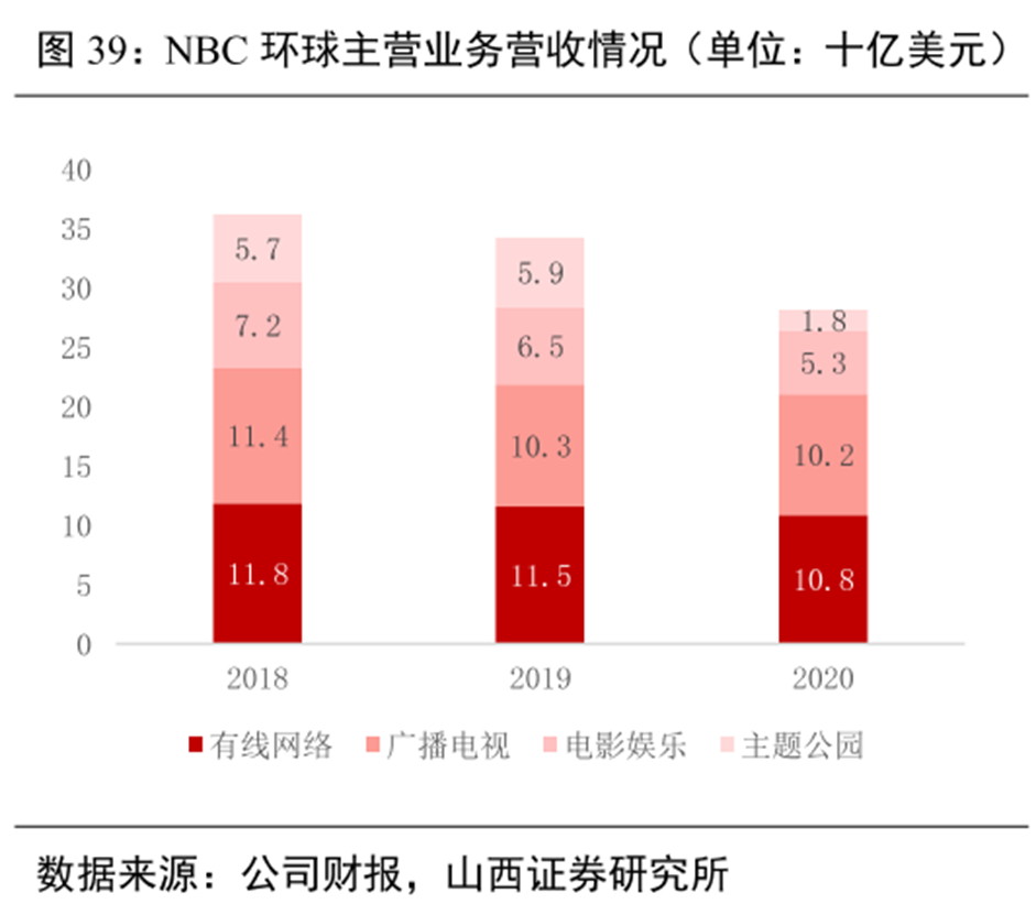 “NBC環球”是環球影城母公司。據財報數據顯示,NBC環球2020年的“主題公園”業務為其帶來了18億美元收入。而在疫情之前,2018年、2019年該業務收入分別達到了56.8億、59.3億美元,兩年盈利均為24.6億美元。
