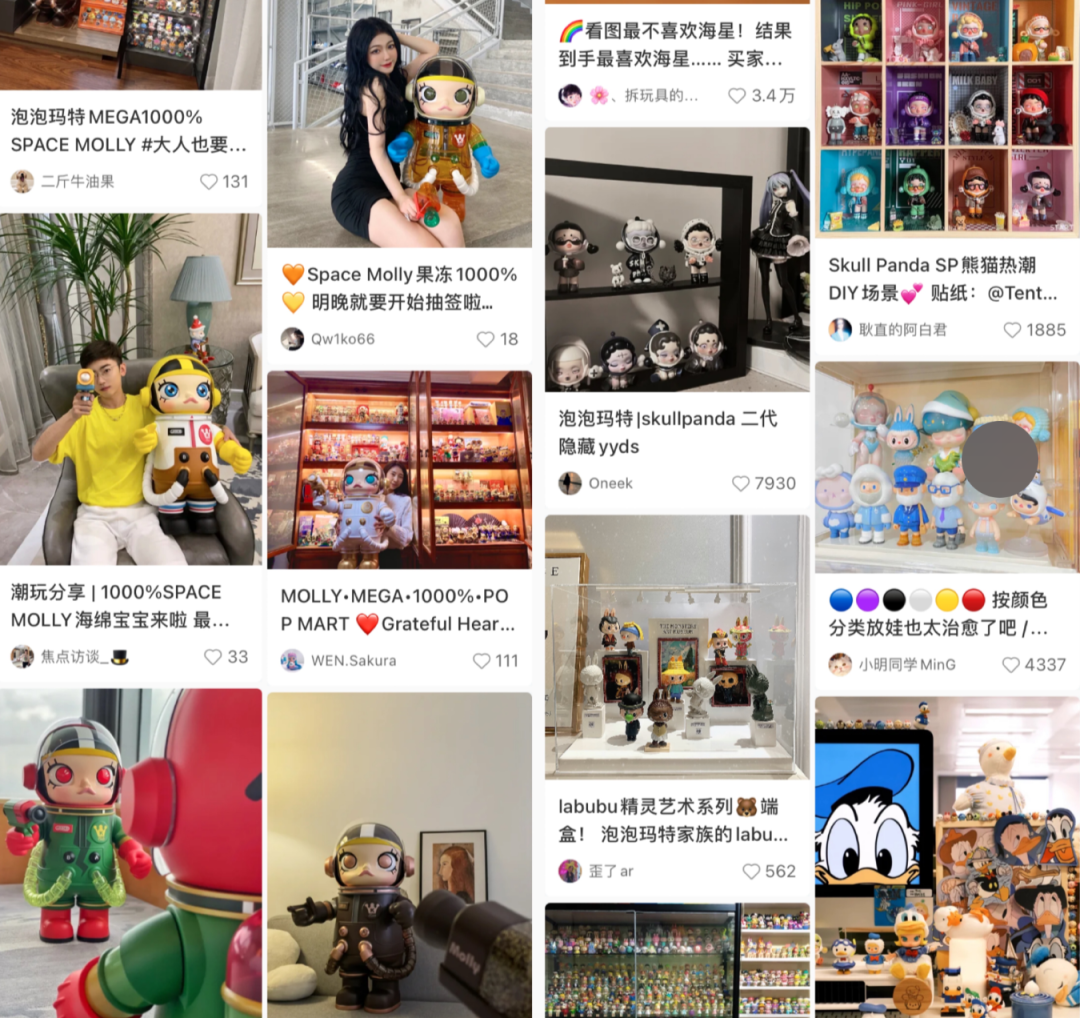 以往的盲盒隱藏款,花錢端盒就能搞到手。但MEGA玩的是限量發售,有錢也不一定能抽到。因此,在抖音、小紅書和微博上“曬娃”成了不少玩家的高光時刻,其中不乏有宋茜、王嘉爾、謝霆鋒等明星。