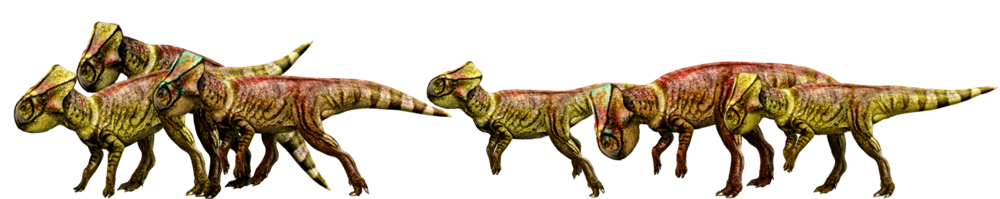 在這片林地之中,微角龍找尋着愛吃的蕨類植物,而就在不遠處,一隻臨河盜龍正對着悠閒的微角龍虎視眈眈。作為小型肉食性恐龍的臨河盜龍,有着優異捕獵技能的它,弓起身子,放慢腳步,一點一點地向着獵物逼近。