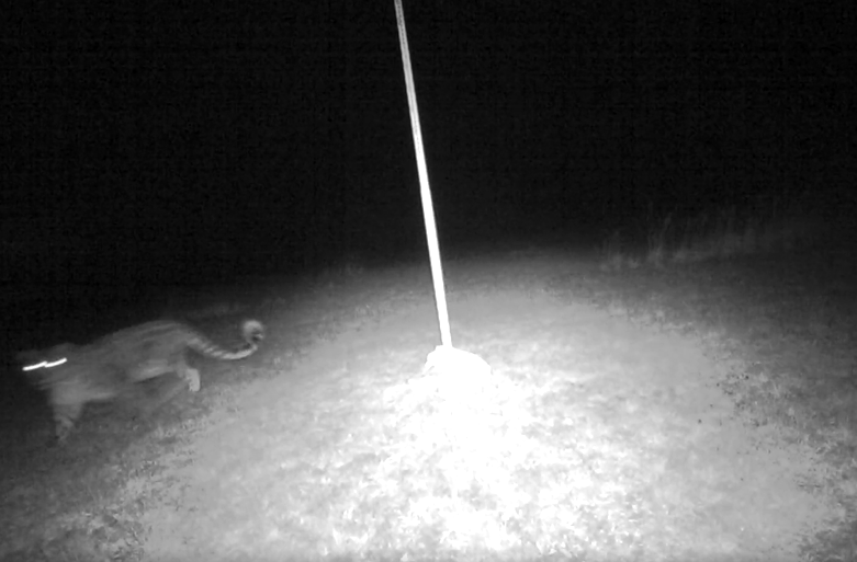 第二天的晚上,我們巡得更遠、更晚,這次的收穫確實多些,我們看到了4只沙狐(包括一隻被路殺的)、3只岩羊、2只野兔以及大約10只跳鼠,甚至還有兩隻家貓……這是一條很長很長的公路,我們用了至少4個小時來巡。