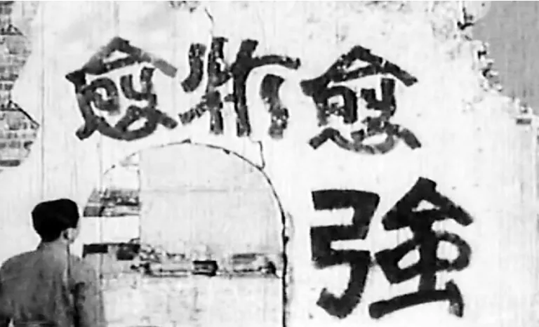 ▲日軍轟炸後,重慶市民在殘破的牆面上寫下“愈炸愈強”