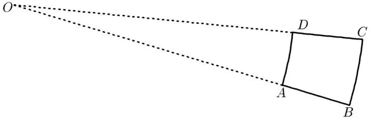 設想大地是平面,那麼華羅庚指出的這個區域就是如圖2的曲邊四邊形ABCD。其中AB、CD是線段,BC和AD是以O為圓心的圓弧。