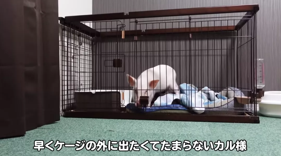 第二天,“100天后要被吃掉的豬”頻道更新了視頻,視頻中,主人將籠子上的幕布拿開,Cal依舊活潑的籠子中向外張望,似乎對外界發生的一切毫不知情。