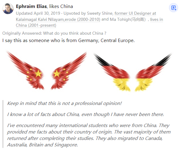 總之,大多數德國人對中國人沒有任何意見,他們傾向於喜歡中國人。