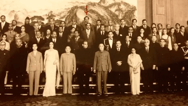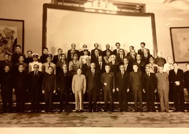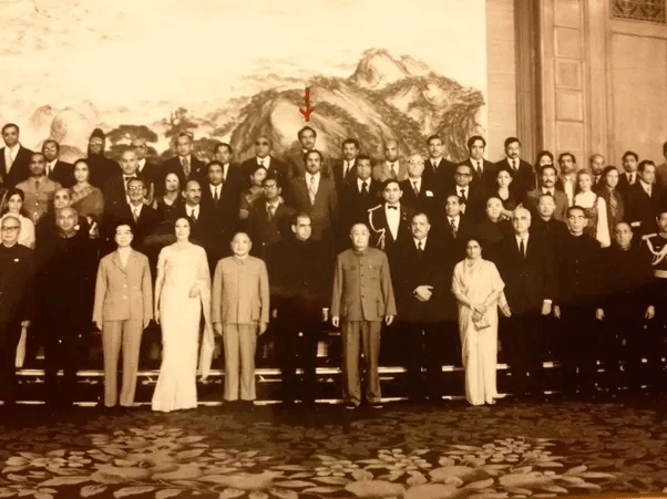 第一排是努斯拉特·布托(Nusrat Bhutto)、祖爾菲卡爾·阿里·布托(Zulfikar Ali Bhutto)等政要和中供領導人。最後一排紅色箭頭指向的那個是我父親。
