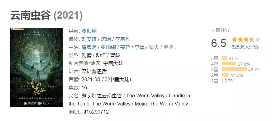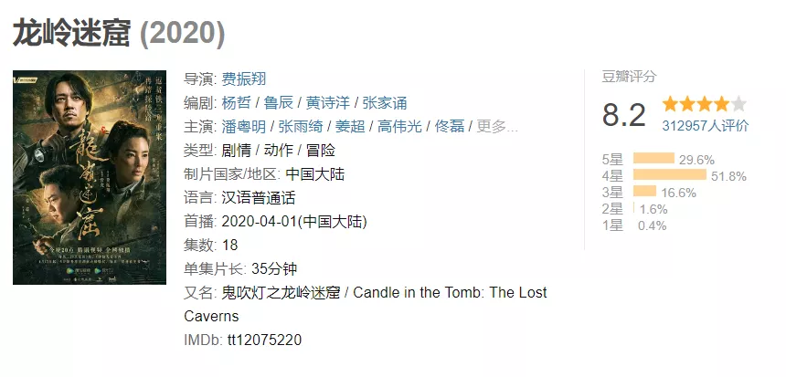 儘管它已經比大多數腦殘國產劇優秀不少(比如前段時間另一部天雷滾滾的盜墓劇),但與其對標的畢竟是8.2分的《龍嶺迷窟》。