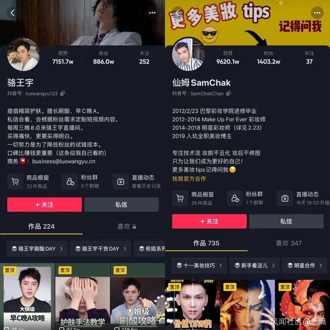 細分領域男性美妝博主駱王宇和仙姆SamChak