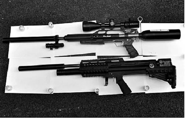 2017年在廣東潮州發生一起槍擊案,犯罪分子手持步槍造成了數人傷亡,犯人被逮捕後從河中撈出作案槍支。從圖中猜測為一支魔改AR步槍,一把貝雷塔霰彈槍。